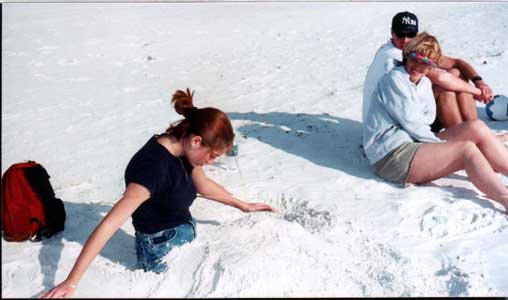 Malorie buries herself in the sand in Sarasota, Florida. Owen and Mom look on, waiting to steal her backpack when she cannot move. | ![]() |