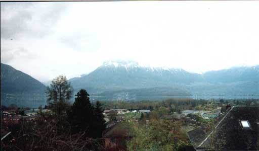 This is the view from the porch of the Francois family, one of Seth's host families. It overlooked Lac Annecy (Lake Annecy), and was truly amazing. Unfortunately the weather was cloudy much of our stay in Annecy. | ![]() |