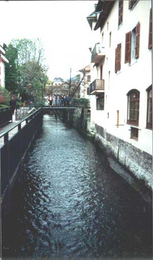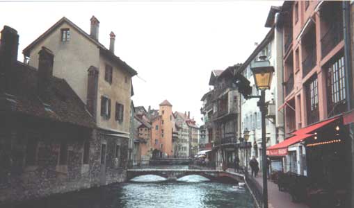 Pictured L-R: Dad, Grandma, Seth, Caitlin, & Owen over a canal of Annecy. |