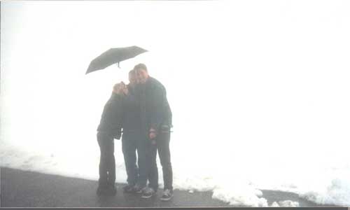 Caitlin, Seth, and Owen enjoying the picturesque view from the top of Le Semnoz, a mountain located near Annecy. It was cloudy, windy, rainy, foggy, and snowy at the same time. The sun was out, we just were unable to see it. | ![]() |